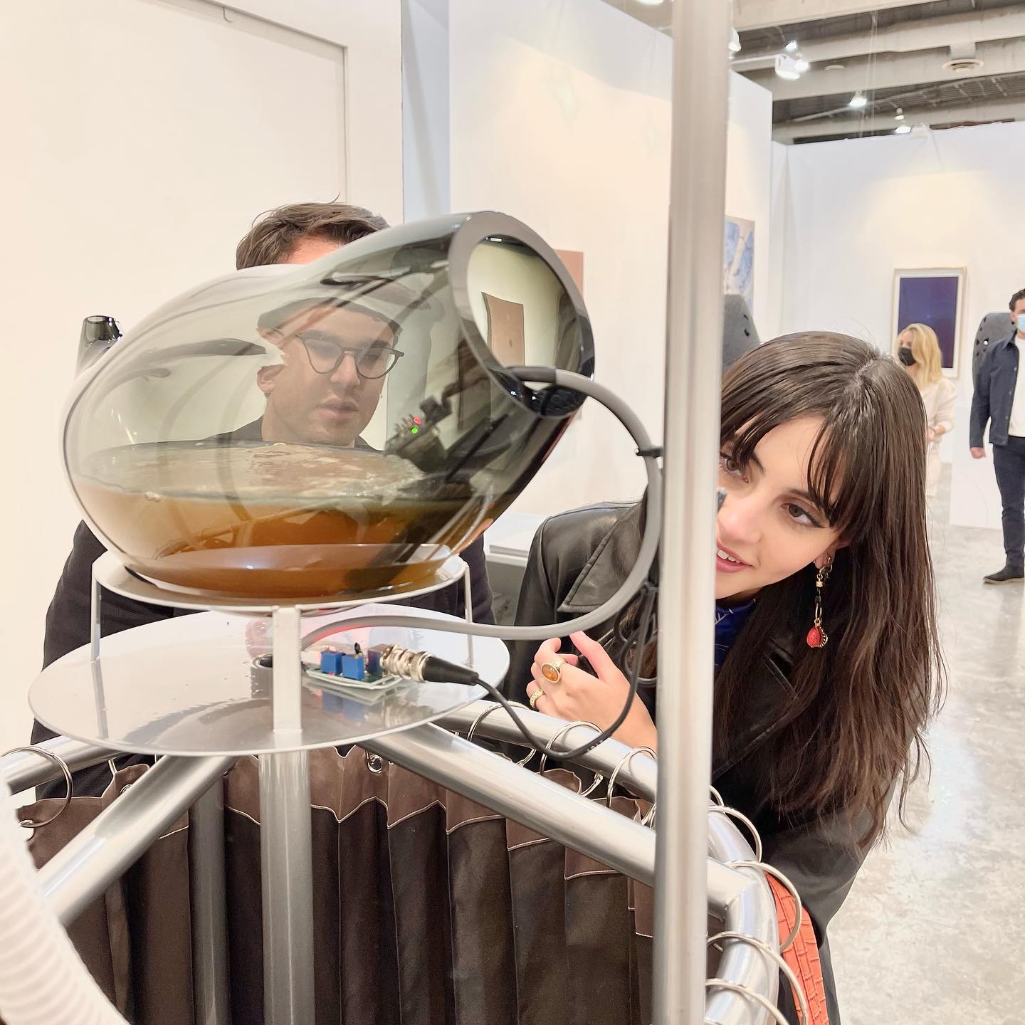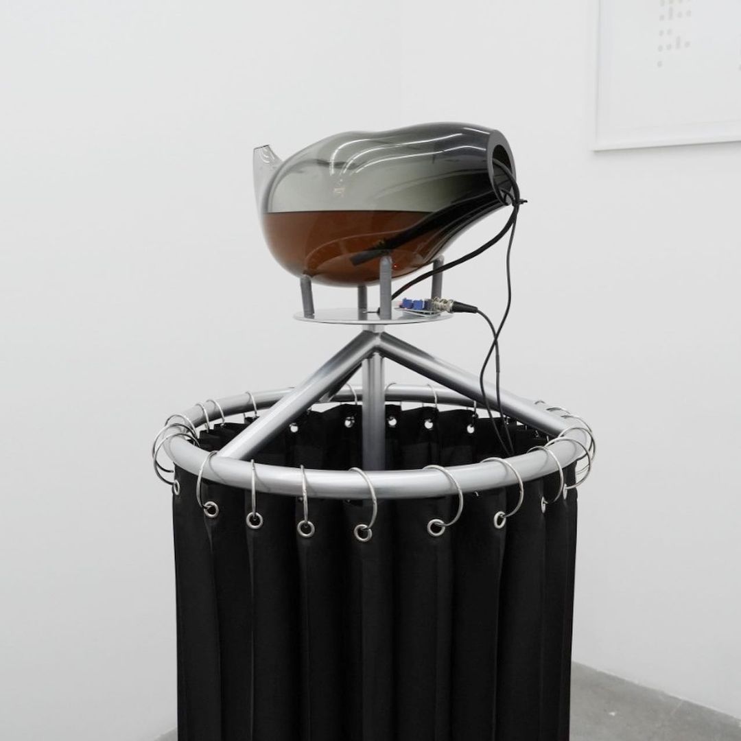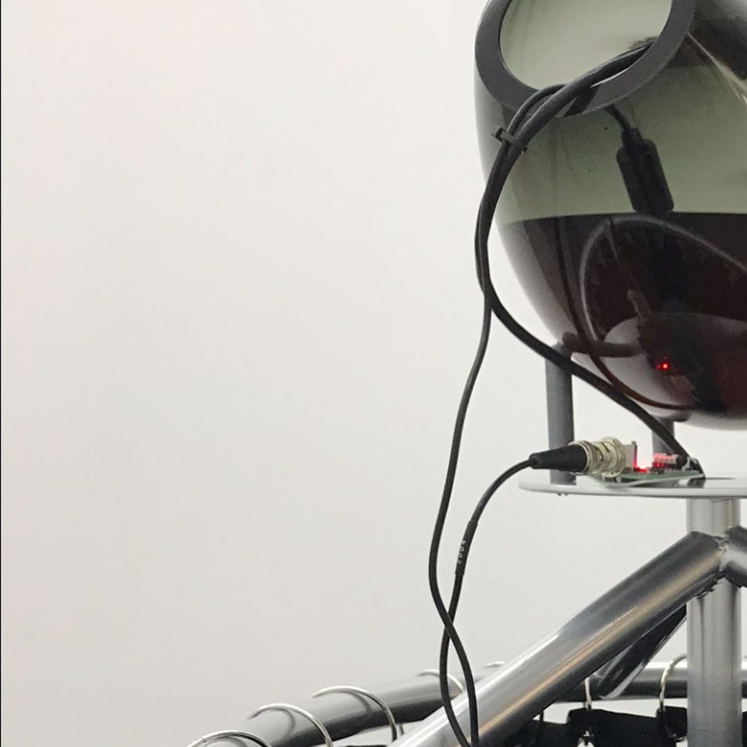 “Hybrida es un proyecto que especula sobre nuevas formas de vida, conectando nodos de los campos de la biología y la tecnología. La exposición consta de tres bioesculturas sonoras. En el interior de cada una de ellas residen organismos vivos (colonias de bacterias y levaduras) en un proceso continuo de fermentación. A través del uso de sensores, la actividad biológica se transforma en datos que finalmente se traducen en un ambiente sonoro de sonidos gástricos e intestinales. Estos estímulos sonoros representan una forma de expresión de los procesos orgánicos, mediados por el lenguaje tecnológico.”