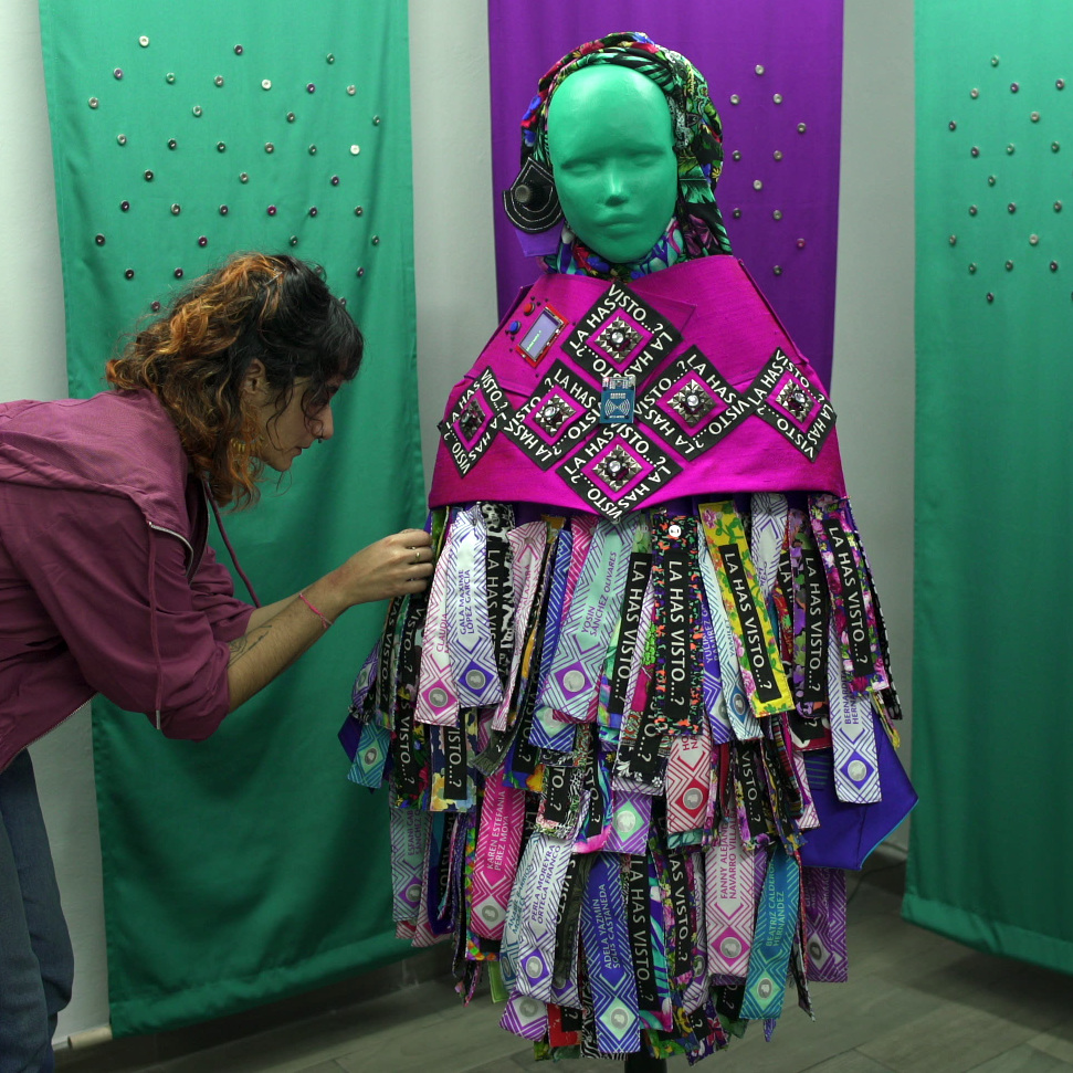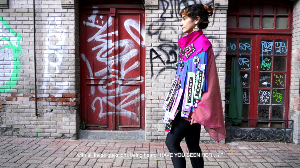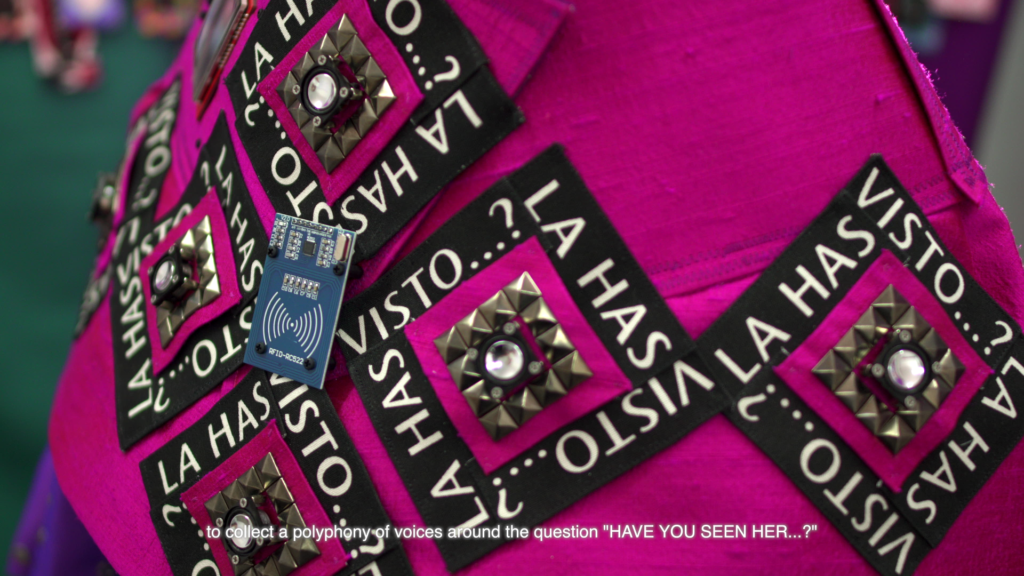 “La has visto…? es una pieza de arte electrónico participativo que busca generar un gesto poético de búsqueda y demanda colectiva por hacer presentes a nuestras compañeras ausentes, víctimas de desaparición forzada en México. La pieza acciona desde la propia performatividad de la búsqueda al hacer alusión a frases y gestos presentes en los procesos de búsqueda de las víctimas desaparecidas, y de esta manera reflexionar sobre esta problemática desde una perspectiva de género.”