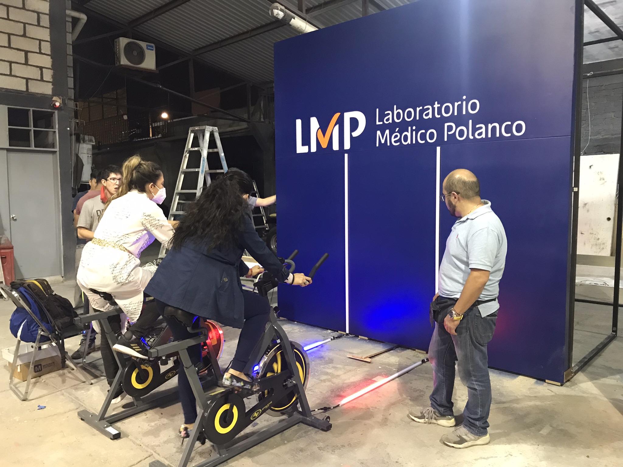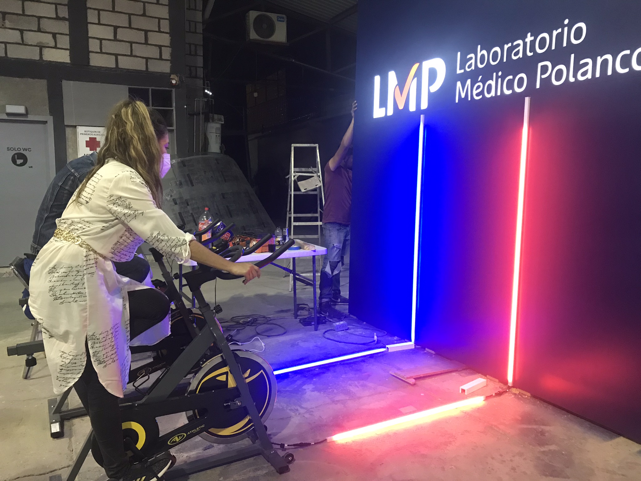 Desarrollamos un sistema electrónico para iluminar tiras LED conforme a la velocidad a la que pedaleaban los participantes de la experiencia.