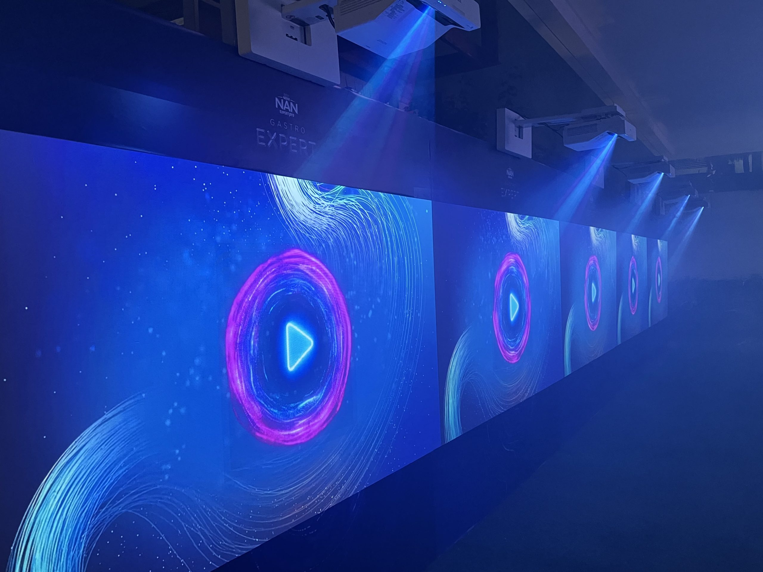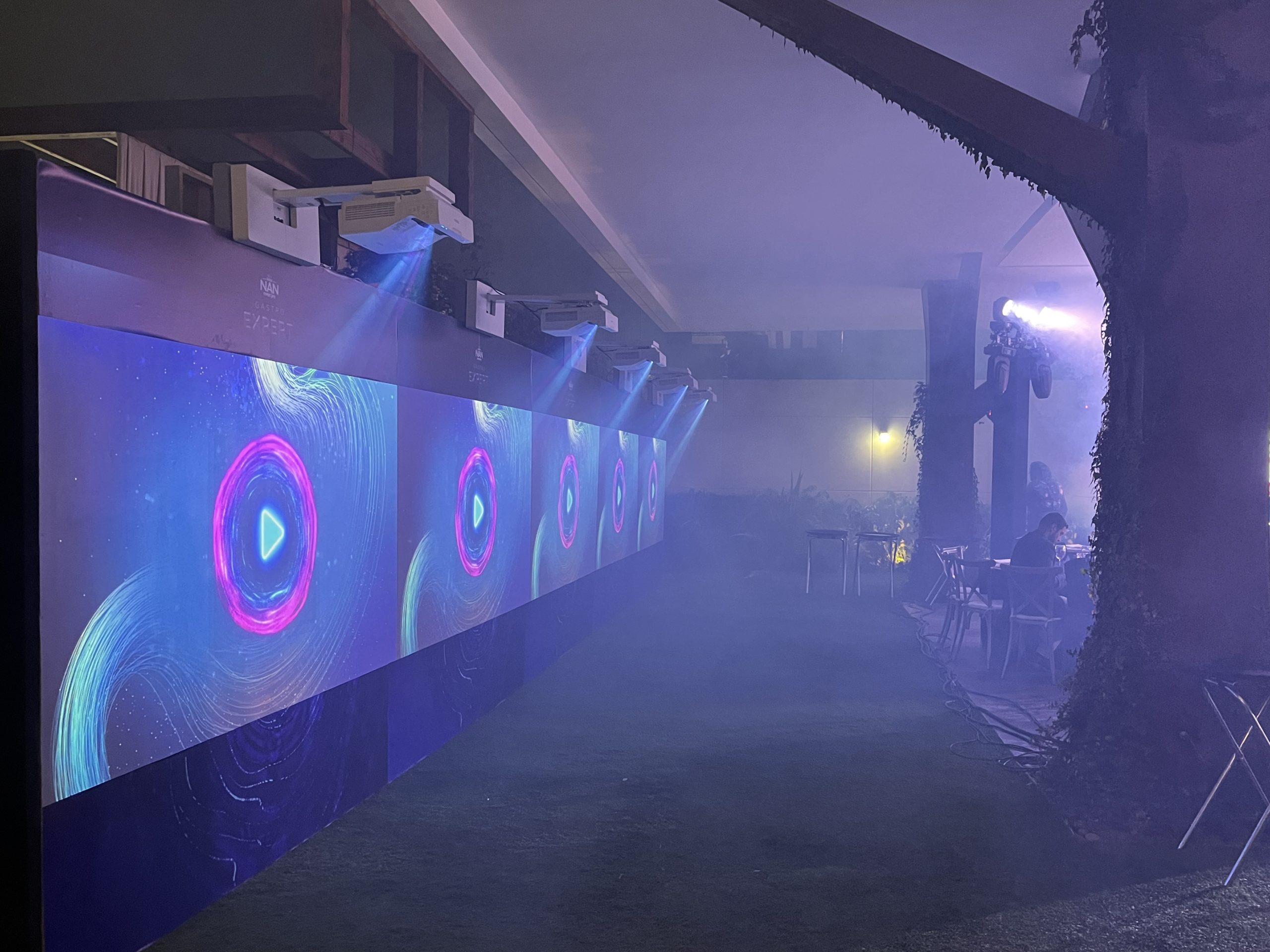 Para el evento de lanzamiento de la nueva línea de productos Expertpro de NAN, implementamos una serie de sensores capacitivos en los ocho muros de la experiencia, estos sensores al detectar la presencia de la mano, disparaban señales de activación para proyectar diferentes contenidos sobre los muros, haciéndolos interactivos con el público.