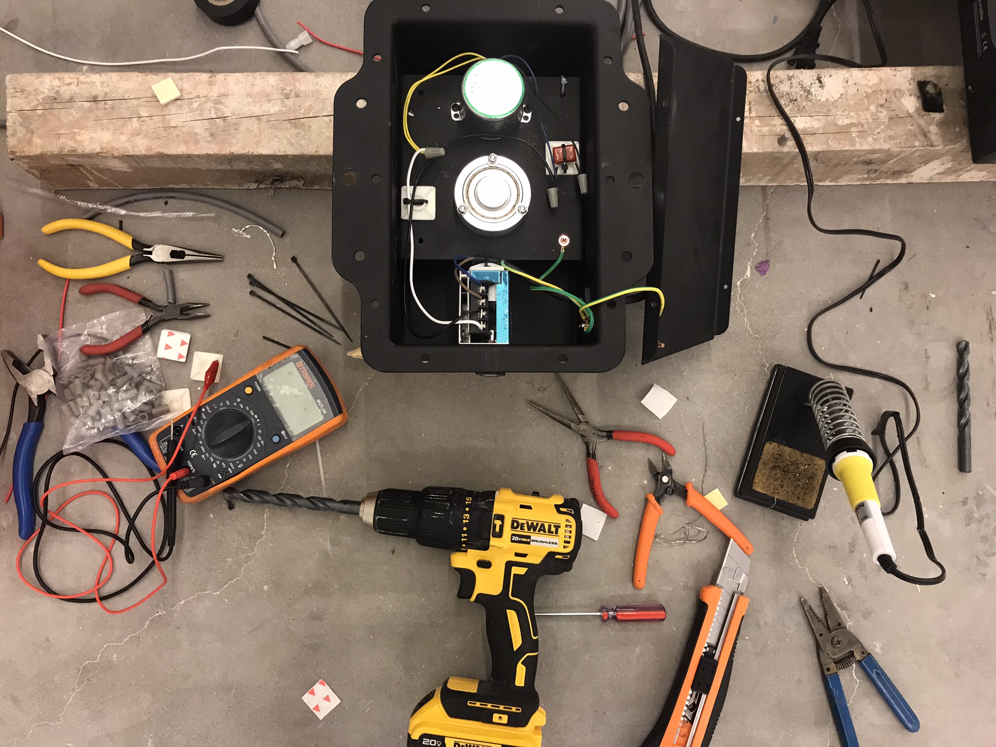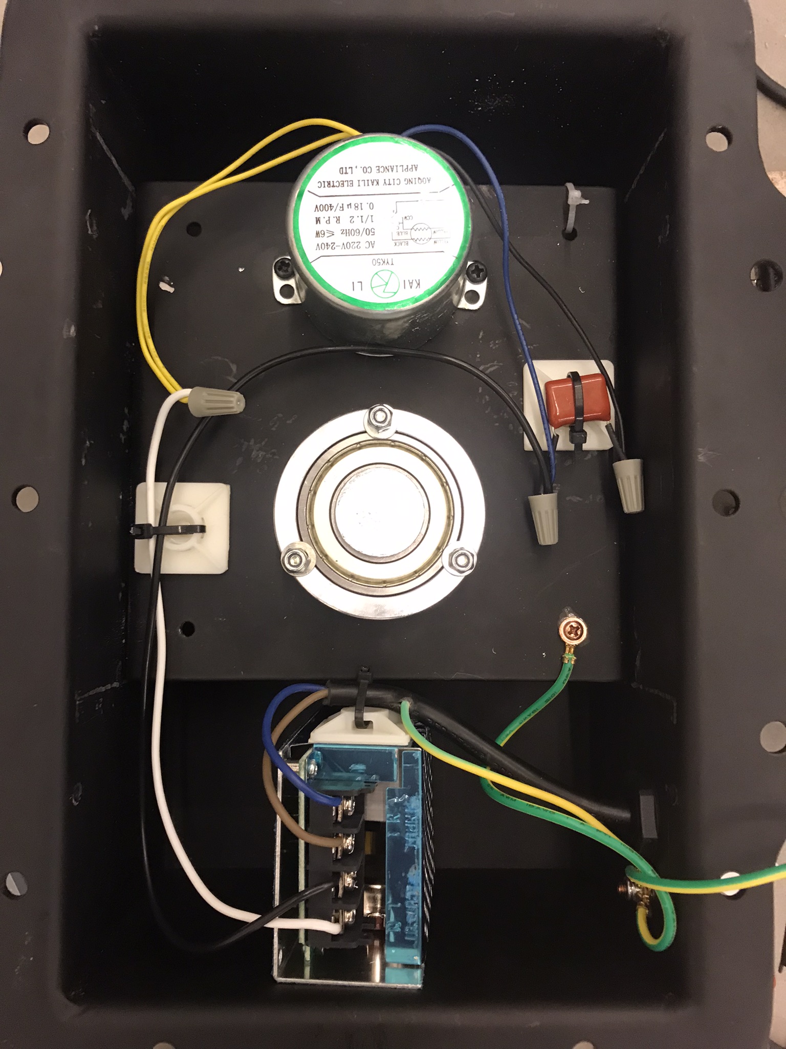 Para esta instalación, modificamos el mecanismo original que hacía girar a las piedras, de manera que se pudiera controlar manualmente tanto la dirección del giro así como su velocidad.