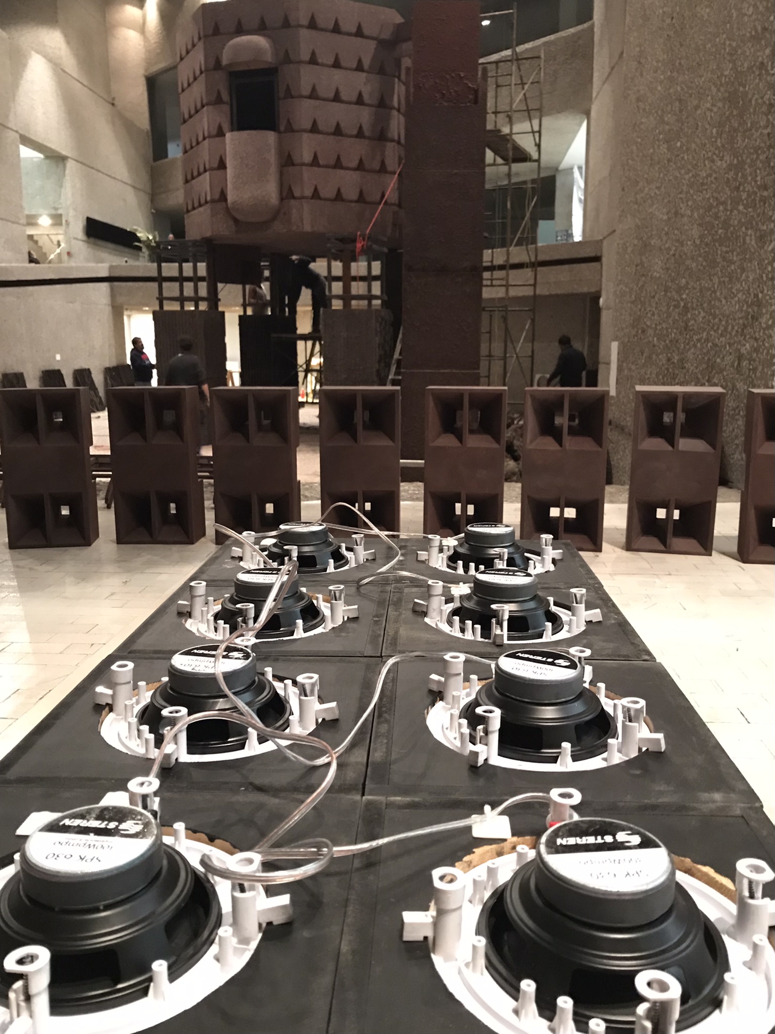 Para esta pieza, diseñamos un circuito para gestionar la carga/descarga de baterias de gran formato que alimentaban un sistema de sonido de ocho canales.
